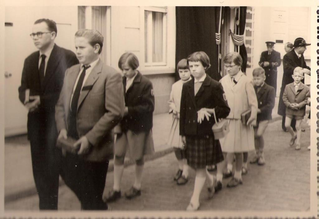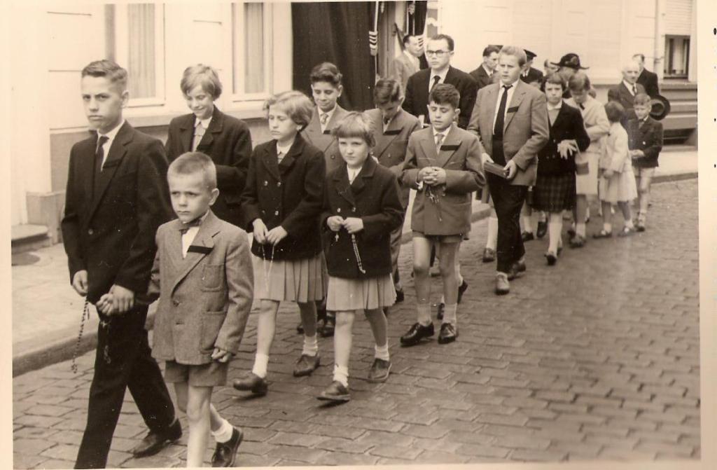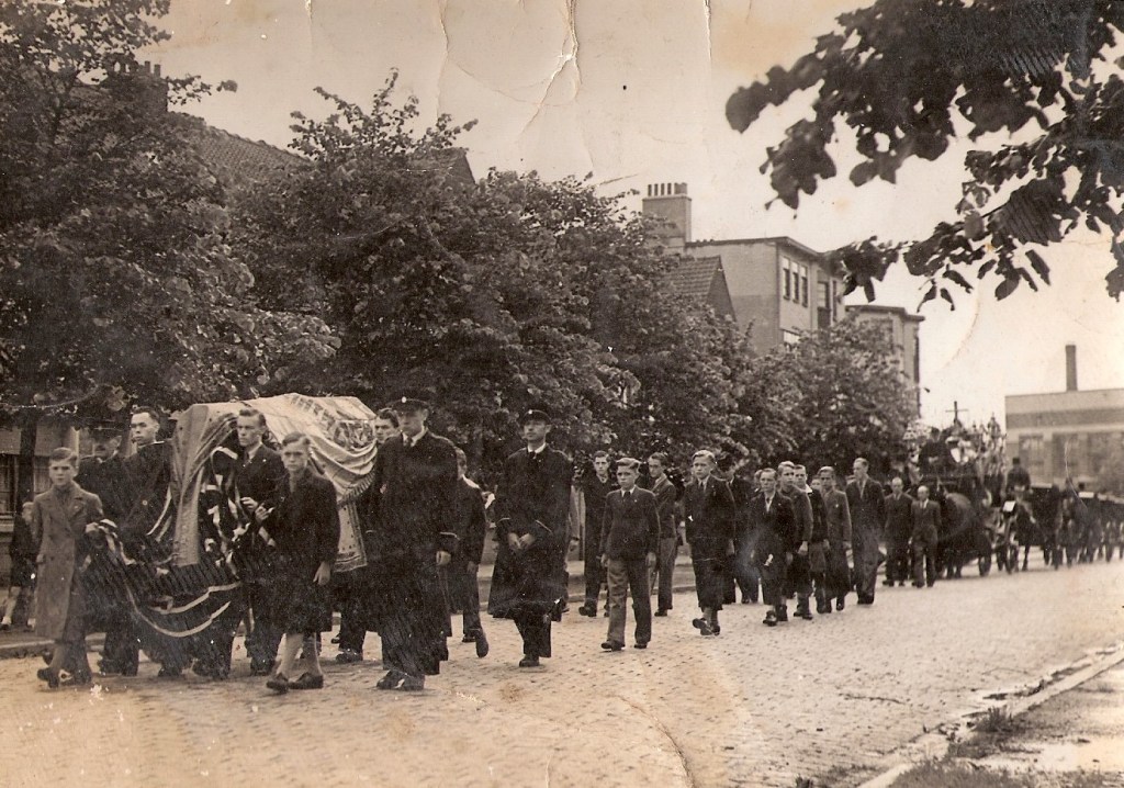 De begrafenis van grootmoeder hebben wij, de kleinkinderen, bewust meegemaakt. Het huis in de Florastraat 35 was gepaleerd en we gingen in stoet of in processie samen te voet, en in volgorde, naar de kerk. Ik voeg de doodsbrief bij, zo kan je misschien de begrafenisstoet ontcijferen.