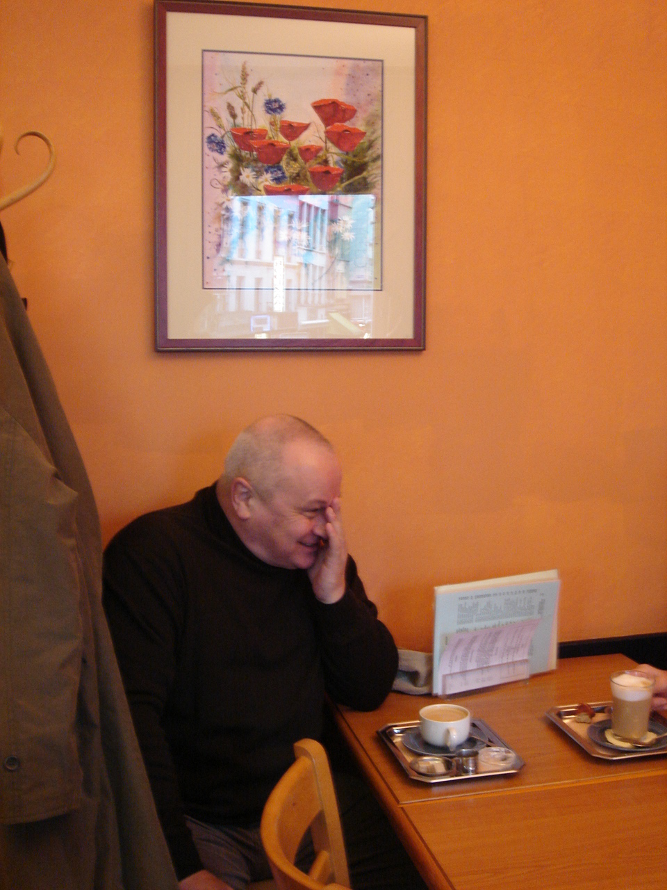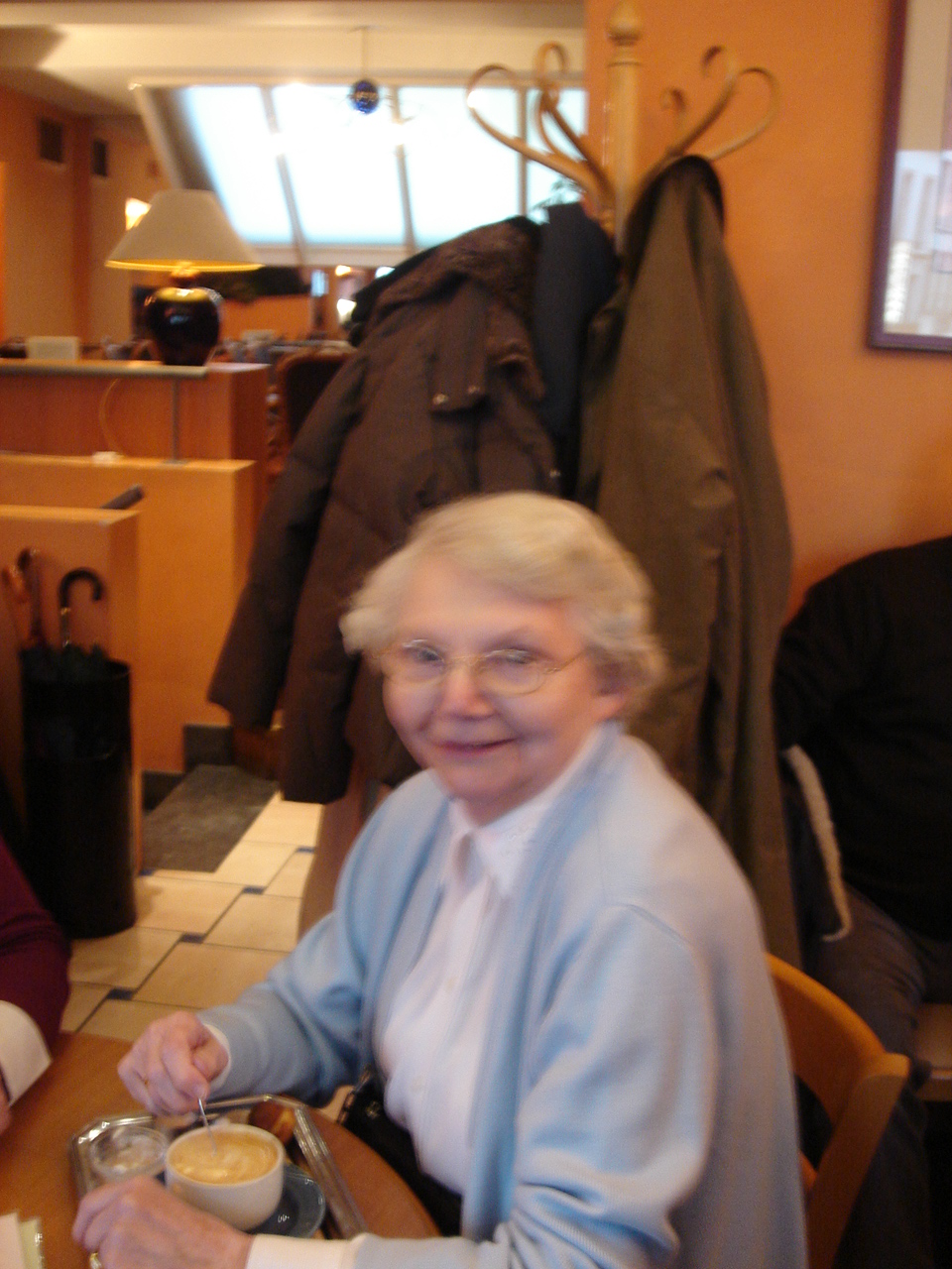 De broers hadden een traditie ingericht: elk jaar in november was er een mis voor de overleden ouders en zuster, telkens gevolgd door een samenkomst bij één van de broers. Wij, de kinderen, gingen ook al naar die mis. Die traditie hebben we verder gezet. Bij de begrafenis van ons vake heb ik aan de familieleden gezegd “We komen nu altijd bijeen in triestige omstandigheden, laat ons ook eens plezante dingen samen ondernemen”. Sindsdien hebben we onze jaarlijkse mis, die nu al jaren in Carolus Borromeus doorgaat gevolgd door een hapje of een drankje en sinds 1996 onze jaarlijkse uitstap in mei. En gewoonlijk zijn alle takken van de Van der Velden-stam vertegenwoordigd. Dit jaar kon het niet doorgaan door corona, maar deze blog is dus een soort “digitale” herdenking. Ik sluit dus af met fotootjes van een “even samenzitten na de mis” op 30 november 2008, toen nog in de Van Dyck met voor elke tak een vertegenwoordiger. Inderdaad, elk afscheid is de geboorte van een herinnering!