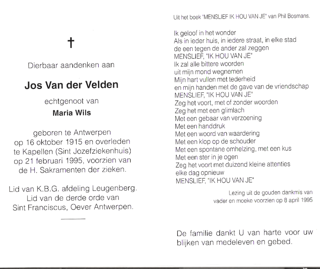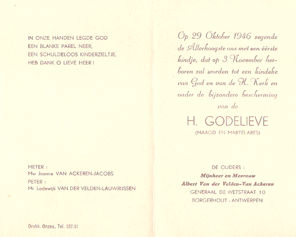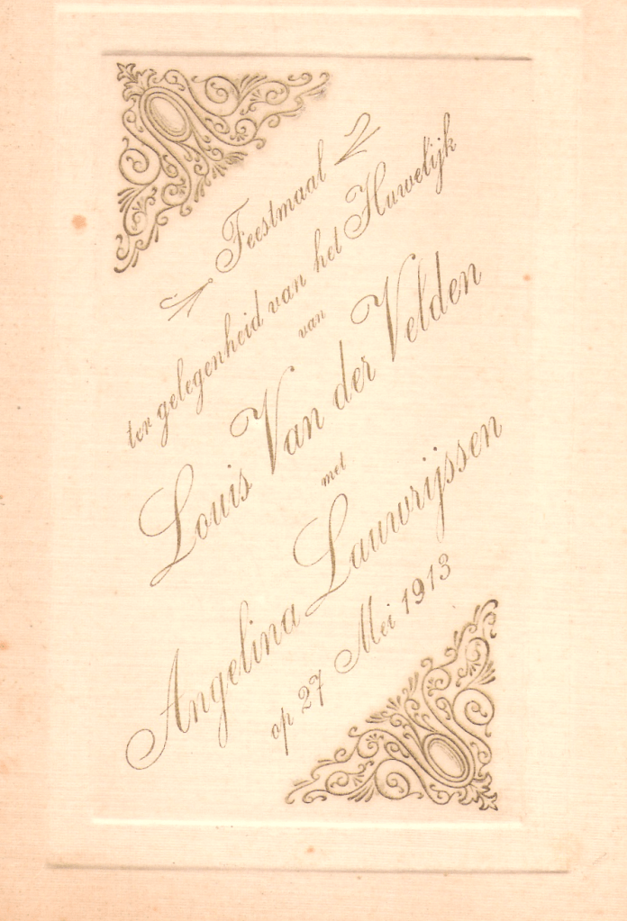 Daar wou ik al lang iets meer over weten en daarom probeerde ik zoveel mogelijk bronnen aan te boren. Een oudere nicht van mijn vader, Maria Van der Velden, een dochter van nonkel Petrus kon mij meer vertellen over haar nonkel Louis, of Franciscus Ludovicus Van der Velden. Hij was erin geloot en als je dan koos voor werk in de Congo kreeg je als je terugkwam een staatsplaats. Dat klopte, want grootvader ging als timmerman naar de kolonie en later werkte hij op de Nationale Bank in Antwerpen.