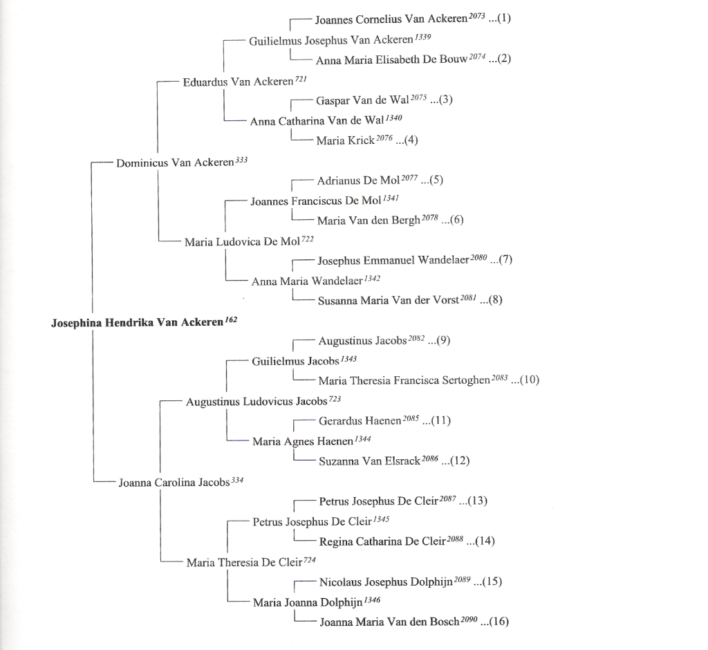Een eerste bewijs van dat vrouwelijke: in deze Van Ackeren stamboom zijn de dochters talrijk en zijn er geen zonen in bepaalde gezinnen!