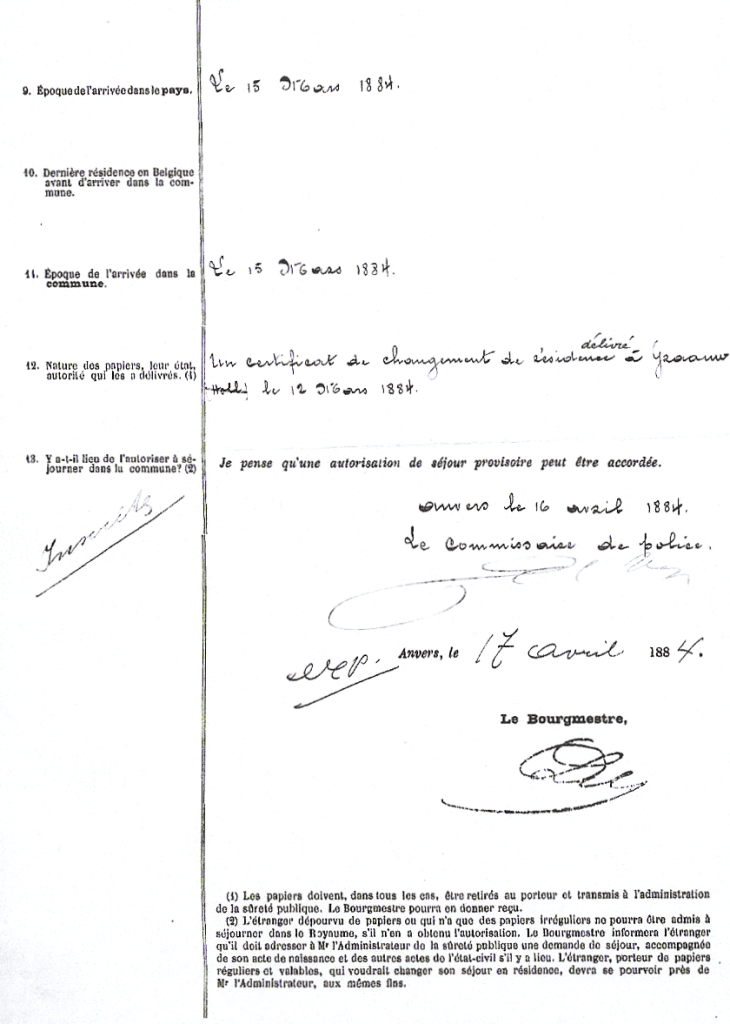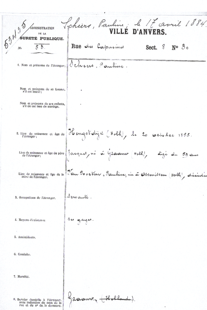 Paulina komt al vroeger naar Antwerpen, nl. op 15 maart 1884 zoals blijkt uit het vreemdelingendossier nr.53.435. Ze werkt als dienstmeid en voorziet zo in haar onderhoud en woont in de Capucijnenstraat nr. 30. Ze keert nog terug naar Graauw om uiteindelijk naar Zandvliet te komen en met Martinus te trouwen. Waar en hoe hebben ze elkaar voor het eerst ontmoet? Dat blijft hun geheim.